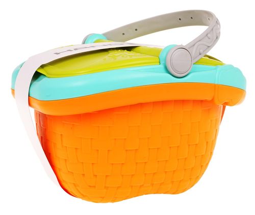 | Koszyk piknikowy z akcesoriami dla dzieci od 3 - go roku życia. Idealny sposób na zabawę na świeżym powietrzu. Ten bogato wyposażony zestaw składa się z 32 elementów: pojemnego koszyka, małego koszyczka, plastikowych owoców i warzyw, mięsa, burgerów, tortilli, ciasta, sera itp.