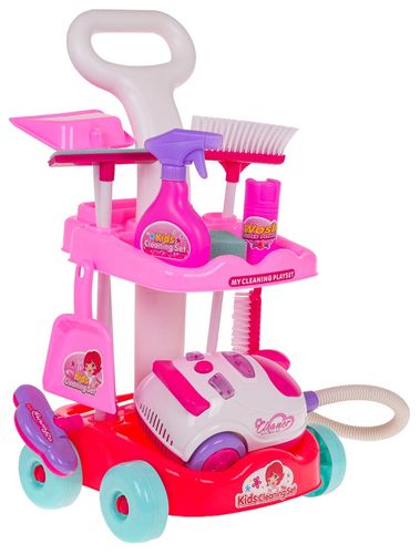 | Bogato wyposażony zestaw sprzątający z interaktywnym odkurzaczem dla dzieci od 3-go roku życia. Zestaw wykonany został z najlepszej jakości plastiku w żywych kolorach. Na zestaw składa się wózek z rączką do pchania i kółeczkami oraz dwoma półeczkami, interaktywny odkurzacz, miotła i akcesoria do sprzątania. Odkurzacz zasilany jest bateriami typu 3 x AA 1,5 V (brak w zestawie), wydaje odgłosy odkurzania, posiada oświetlenie oraz wciąga drobne zanieczyszczenia z powierzchni. Funkcje zestawu: - przeznaczony dla dzieci od 3-go roku życia, - wykonany z plastiku najlepszej jakości w żywych kolorach, - stabilny wózek z rączką i kółeczkami oraz 2 półeczkami, - interaktywny odkurzacz z odgłosami odkurzania, oświetleniem i zbierający drobne zanieczyszczenia z powierzchni, - świetny sposób na naukę czystości. |