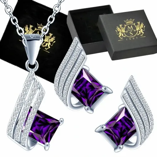 Ten unikalny zestaw biżuterii z Mennicy Świdnickiej® składa się z kolczyków i naszyjnika wykonanych z najwyższej jakości srebra próby 925. Decydując się na ten komplet, otrzymujesz produkty wysadzane diamentowymi cyrkoniami i znakomitymi kryształami. To siła wyjątkowości zamknięta w najdrobniejszych detalach.
