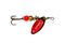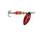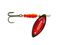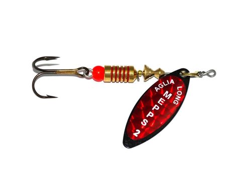 Na paletkę Aglia Long naklejony jest czerwony, łuskowany hologram. Tym razem efekt błystki ekscentrycznej - niczego istniejącego nie naśladuje, a jednak prowokuje, niekiedy bardziej aniżeli jakiekolwiek naturalne wzory. Są takie dni, kiedy czerwony, skrzący się tęczowo hologram wabi niemal wszystkie drapieżniki - od wzdręgi i okonia z jeziorowej płycizny, klenia i jazia sprzed rzecznej ostrogi, poprzez trolingowego szczupaka z głębokiej toni, po głowacicę z Popradu czy Dunajca. Redbo Giant Killer nr 5 sprawdza się też w przybrzeżnej strefie Bałtyku, gdzie bywa skuteczny na trocie i łososie.
