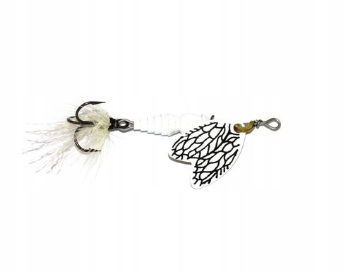 Mepps Bug to obrotówka, która ma naśladować wylatującego lub podnoszącego się z wody owada. Paletka o ?zdublowanym? kształcie, żyłkowanie na jej powierzchni ? i oto są skrzydełka. Wydawać by się mogło, że skoro paletka wiruje, to zarówno jej kształt, jak i zdobienie są przesadą, bo i tak ryby nie będą tego widzieć. A jednak?Bug ma jednak podobną tendencję jak Comet ? co kilkanaście obrotów zmienia kierunek wirowania i przez ułamek sekundy skrzydełka są doskonale widoczne. To wystacza rybom do skojarzenia smakowitości kąska. Pobicia następują zazwyczaj tuż po zmianie kierunku obrotu. Kolejnym atutem jest segmentowany, owadzi korpus.