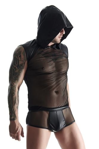 koszulka z ozdobnym elementem czarnych gumek i srebrnych metalowych pierścieni / u góry z przodu i z tyłu pionowa ozdobna gumka w kratkę / czarna miękka w dotyku i lekko połyskująca gumka / szycie wzmacniające / podkreśla kształt ciała