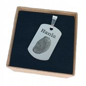 Ten wyjątkowy nieśmiertelnik z wygrawerowanym odciskiem palca, wykonany z najwyższej próby srebra 925 w naszej pracowni, łączy precyzyjne rzemiosło z osobistym akcentem. Ręczne polerowanie zapewnia gładką, trwałą powierzchnię, a grawer odcisku palca – na przykład dziecka – oddaje każdy detal z dbałością o autentyczność, tworząc biżuterię, która przetrwa lata.