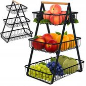 Wykonany z wytrzymałego metalu o eleganckim czarnym wykończeniu, koszyk gwarantuje niezawodną stabilność dzięki szerokiej podstawie, która zapobiega przewróceniu nawet przy cięższych ładunkach. Wysokość całkowita 49 cm i odstępy między poziomami 15,5 cm pozwalają na wygodne układanie warzyw i owoców, czyniąc codzienne korzystanie prostym i bezstresowym.