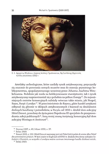 Michał Tyszkiewicz (Wołożyn na Mińszczyźnie 1828 – Rzym 1897) był wybitnym kolekcjonerem i badaczem sztuki antycznej. Jako pierwszy Polak w latach 1861–1862 prowadził wykopaliska w Egipcie i Nubii, przygotowując wspomnianą już pracę Dziennik podróży do Egiptu i Nubji (część pierwsza wydana w Paryżu w 1863; całość ukazała się w 1994). Wyprawa zaowocowała hojnym darem 194 antyków egipskich dla Muzeum Luwru. Jego nazwisko zostało wygrawerowane w Luwrze, w rotundzie Apollina, pośrod głównych donatorów muzeum. W 1865 roku Tyszkiewicz na stałe osiedlił się w Rzymie. Kolekcjonował starożytne gemmy, numizmaty, ceramikę, wyroby ze srebra i szkła, złotą biżuterię, rzeźby w brązie i w marmurze. Zdobył ogromną i zasłużoną reputację w świecie nauki. Jego zbiory należały do cenniejszych kolekcji europejskich, jakie powstały w drugiej połowie XIX wieku. Obiekty z jego kolekcji znajdują się dziś w Luwrze, British Museum, Ny Carlsberg Glyptotek w Kopenhadze, Metropolitan Museum of Art w Nowym Jorku czy Museum of Fine Arts w Bostonie, a także w Muzeum Narodowym w Warszawie. Publikacja jest pierwszą monografią dotyczącą biografii i kolekcji Michała Tyszkiewicza, opartą na nieznanych dotąd materiałach archiwalnych, korespondencji, katalogach aukcyjnych i rzadko wykorzystywanej literaturze historycznej. Książka przywraca Michałowi Tyszkiewiczowi zasłużone miejsce w europejskiej kulturze jako jednej z ważniejszych postaci XIX-wiecznego kolekcjonerstwa i międzynarodowego handlu antykami.