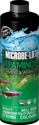 Microbe-lift Vitaminos nie zawiera metali ciężkich, fosforanów, krzemianów oraz azotanów. Wstrząsnąć przed użyciem.