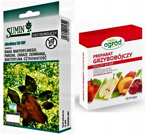 Miedzian 50 WP i Syllit 65 WP to wysokiej jakości środki grzybobójcze opracowane specjalnie do ochrony drzew owocowych, warzyw i winorośli przed szeregiem groźnych chorób grzybowych. Ich unikalna formuła zapewnia skuteczne działanie zapobiegawcze i interwencyjne przeciwko takim chorobom jak parch, zaraza ogniowa, rak bakteryjny, kędzierzawość liści, mączniaki oraz wiele innych.