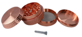 Elegancki, metalowy młynek do tytoniu i ziół o beczułkowatym kształcie i dekoracyjnej fakturze sprawia wrażenie prawdziwego gadżetu premium. Antypoślizgowe frezowania na bokach ułatwiają pewny chwyt, a czteroczęściowa konstrukcja z sitkiem pozwala oddzielić najdrobniejszy pyłek. Ostre, precyzyjnie wycięte ząbki gwarantują szybkie i równomierne rozdrabnianie bez większego wysiłku. To praktyczny i stylowy młynek, który świetnie sprawdzi się zarówno na co dzień, jak i w roli prezentu.