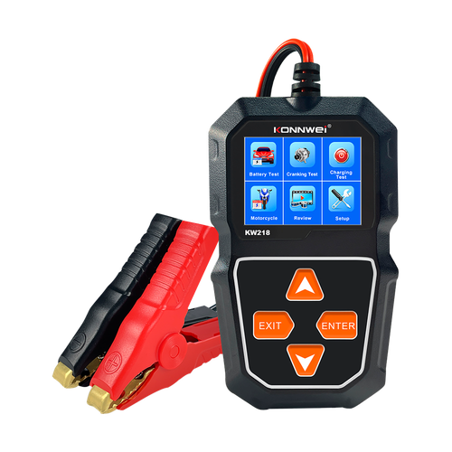Miernik baterii Konnwei KW218 to praktyczne i niezawodne narzędzie do kontroli stanu akumulatora w zakresie napięcia od 6 do 12 V. Umożliwia odczyt kluczowych parametrów, takich jak SOC (poziom naładowania), SOH (stan zdrowia) oraz rezystancja wewnętrzna, co pozwala szybko i precyzyjnie ocenić kondycję baterii. Zakres pomiarowy wynosi od 100 do 2000 CCA, a wszystkie dane prezentowane są na wyraźnym ekranie LCD.
