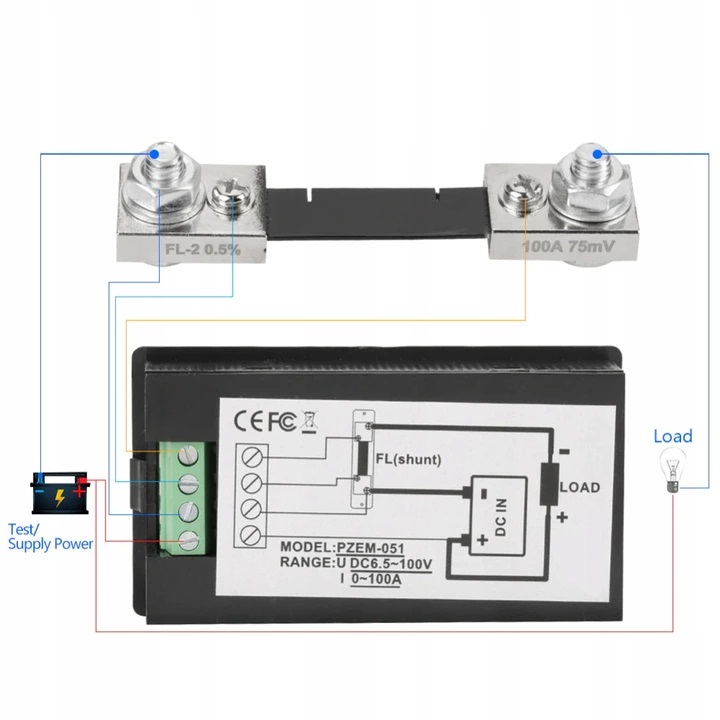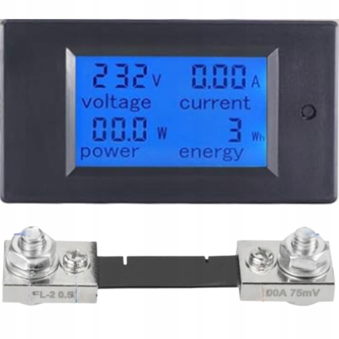Pomiar prądu odbywa się za pomocą bocznika 100A (zawarty w zestawie).