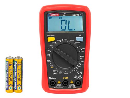 Miernik wielkości dłoni cechujący się niezwykłą wydajnością oraz wytrzymałą przed upadkami obudową. Jasny i czytelny wyświetlacz ułatwia korzystanie z urządzenia. Seria UT33 zapewnia użytkownikom bezpieczną pracę w środowisku CAT II 600V. Specyfikacja: Napięcie DC: 200mV / 2000mV / 20V / 200V / 600V ±(0.5%+2) Napięcie AC: 200V / 600V ±(1,2%+3) Natężenie prądu stałego DC: 2000 µA / 20 mA / 200 mA / 10 A ±(1%+2) Rezystancja: 200Ω / 2KΩ / 20kΩ / 200kΩ / 20MΩ / 200MΩ ±(0.8%+2) Funkcje: Pomiar hFe tranzystorów, testowanie diod, akustyczny tester ciągłości, NCV Automatyczne wyłączanie: Tak Maksymalna wyświetlana wartość: 1999 Zasilanie: 2x AAA (baterie w zestawie) Wymiary produktu: 134x77x47mm Waga produktu: 206g (waga z bateriami) Instrukcja obsługi [PL]