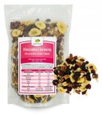 ✅ Składniki mieszanki: chipsy bananowe, migdały, orzechy włoskie, orzeszki ziemne, pestki dyni, rodzynki, żurawina, inne