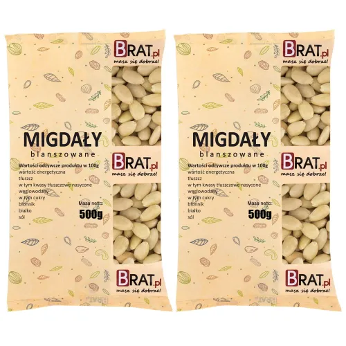 Opakowanie zawiera 2x 500g migdałów blanszowanych.