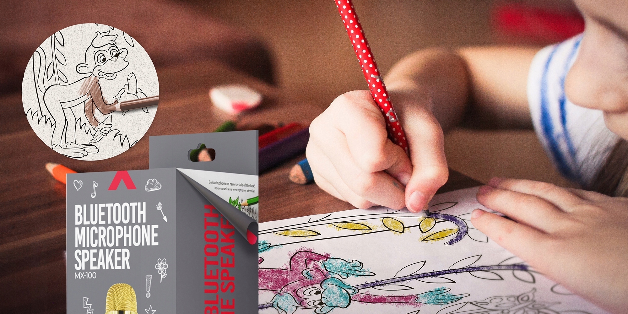 Dla najmłodszych mikrofon ma jeszcze jedną niespodziankę – po wewnętrznej stronie opakowania znajduje się kolorowanka pełna małpich figli. Rozwijaj swoją kreatywność przez dobrą zabawę!