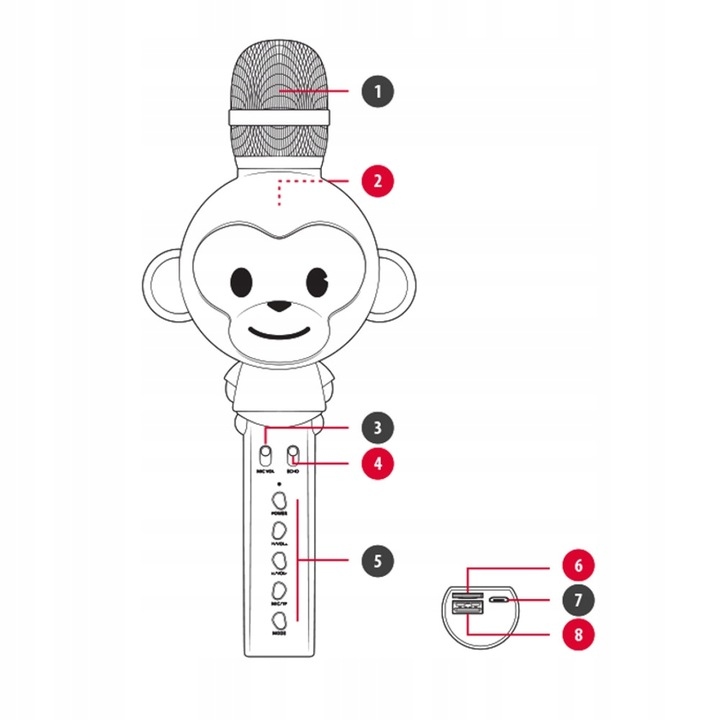 Mikrofon zapewni dobrą zabawę zarówno dzieciom, jak i dorosłym. Nikt nie przejdzie obojętnie obok muzycznej małpki, która dostarcza niezwykłej zabawy i radości wszystkim, niezależnie od wieku.
