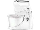 ✅ Cechy dodatkowe: 2 haki do zagniatania ciasta, 2 końcówki do mieszania, Stojak, 5 trybów prędkości, Funkcja Turbo, Mieszanie, Ubijanie, Zagniatanie ciasta, Możliwość mycia końcówek w zmywarce, Obrotowa misa 3 l, Przycisk zwalniający końcówki