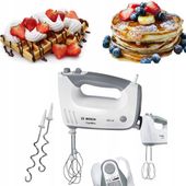 Mikser ręczny BOSCH ErgoMixx MFQ36400 z silnikiem o mocy 450W zapewnia precyzyjne i efektywne rezultaty, niezależnie od wyzwania. Ergonomiczny kształt z miękkim uchwytem i dużymi przyciskami gwarantuje wygodę podczas intensywnego użytkowania, a nowoczesna konstrukcja łączy siłę z cichą pracą, co pozwala na skupienie się wyłącznie na tworzeniu ulubionych potraw.