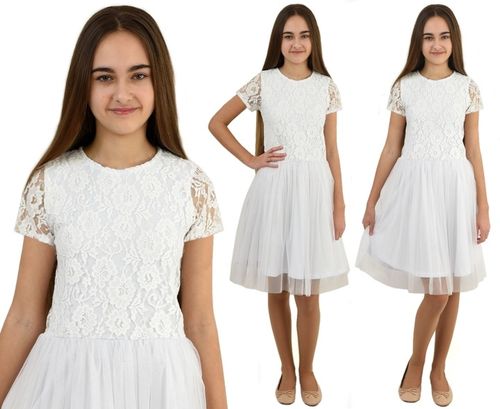 Bez względu na to, czy planujesz wyjątkową uroczystość, taką jak komunia czy ślub, czy po prostu chcesz wyglądać olśniewająco na co dzień, ta sukienka to doskonały wybór. Jej klasyczny, biały kolor i delikatny tiul podkreślą Twoją naturalną urodę i sprawią, że będziesz wyglądać zjawiskowo.
