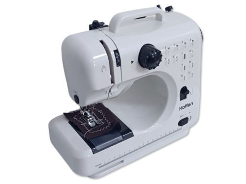 Mini maszyna do szycia marki Hoffen, która nie jest zabawką - jest w pełni funkcjonalnym urządzeniem do szycia i wykonywania drobnych poprawek krawieckich. Maszyna posiada 12 programów szycia, chwytacz ze stali nierdzewnej, wymienną stopkę, podświetlanie LED oraz wygodną rączkę ułatwiającą przenoszenie. Maszyna posiada także szufladkę oraz nawijak szpulki. Dzięki wygodnej rączce i niskiej wadze 1,85kg można ją swobodnie przenosić, a dzięki możliwości zasilania za pomocą baterii możliwe jest szycie nawet tam gdzie niema dostępu do prądu. Maszyna nie nadaje się do szycia: jeansu, zamszu, weluru, sztruksu oraz skóry. Maszyna jest przeznaczona do szycia cienkich oraz średnio grubych materiałów.