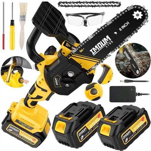 Ergonomiczna konstrukcja piły gwarantuje efektywną pracę. Podgumowana rękojeść zapewnia pewny uchwyt, a przycisk bezpieczeństwa zapobiega niezamierzonemu uruchomieniu. Solidna obudowa i osłona łańcucha chronią użytkownika. Kompatybilność z przedłużką i innymi narzędziami marki IMOUM zwiększa jej uniwersalność.