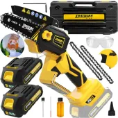Zestaw obejmuje aż dwa akumulatory litowo-jonowe o dużej pojemności 2000 mAh, co gwarantuje długi czas pracy bez konieczności częstego ładowania. Wbudowany system smarowania łańcucha zapewnia płynne i bezproblemowe działanie.