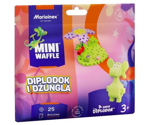 Zestaw Diplodok i Dżungla z serii Mini Waffle to 25 elementów, z których stworzysz fragment z drzewem i kwiatami, oraz figurką przezabawnego smoka Diplodoka. To urocze stworzenie bez przerwy chce przeżywać przygody i odkrywać nowe kawałki świata I chce to robić właśnie z Tobą!
