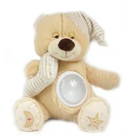 * wbudowana lampka/projektor - za jej pomocą miś rozświetli ciemności w pokoju dziecka wyświetlając różnokolorowe gwiazdki na ścianach bądź suficie