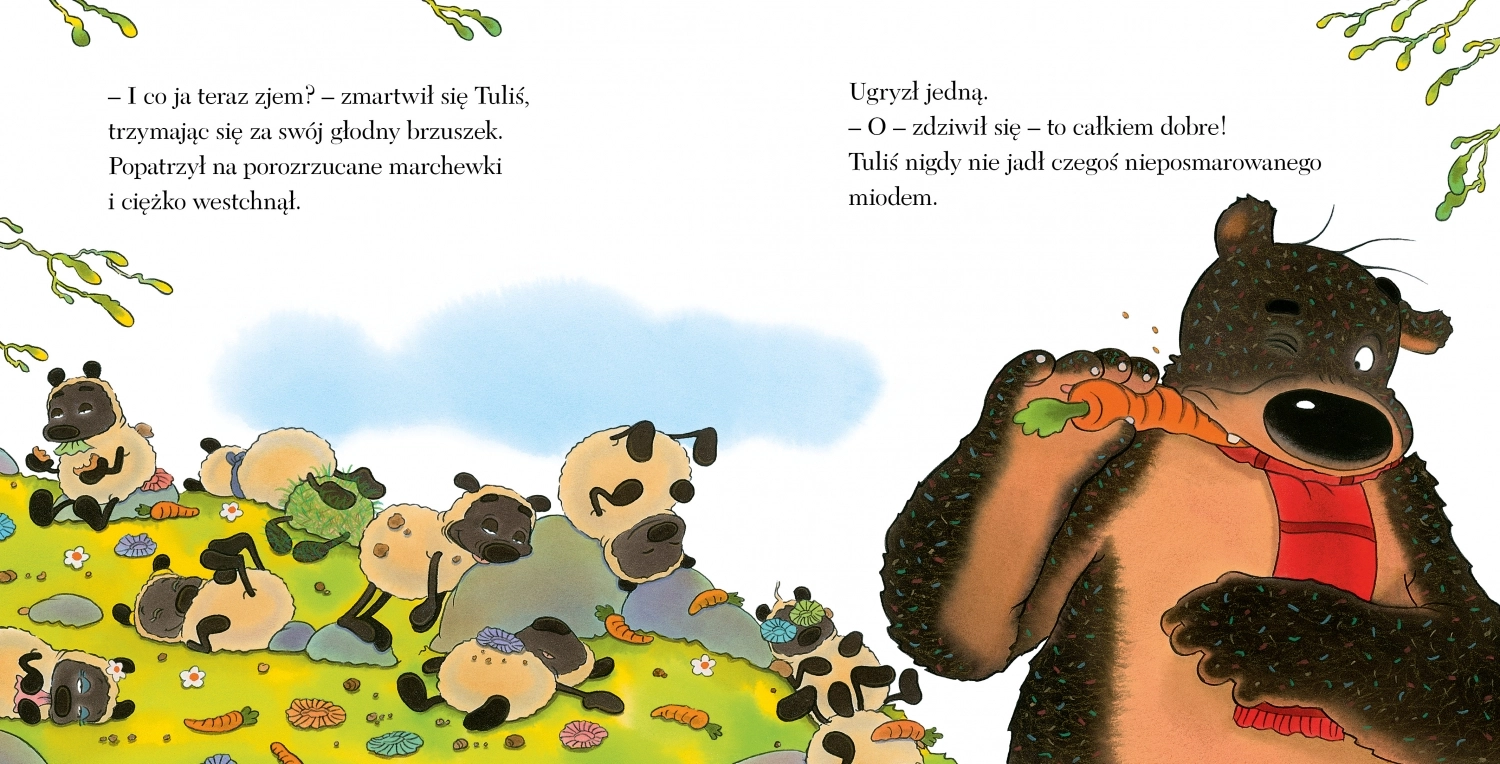 Miś Tuliś uwielbia pyszne miodowe ciasteczka, ale nagle jego miodek znika… Czy Tuliś da się przekonać owcom i spróbuje czegoś innego i nowego: jagód, marchewek czy orzechów? A może nawet to polubi?