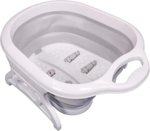 Miska do moczenia stóp marki Zentoes model składany gwarantuje relaks i odprężanie w zaciszu Twojego domu! Wyposażona jest w cztery wałki masujące zapewniające leniwe chwile podczas odprężającego pedicure. Dodaj do wody odrobine soli do kąpieli lub ulubionego olejku eterycznego a odczujesz jak napięcie opuszcza twoje stopy.