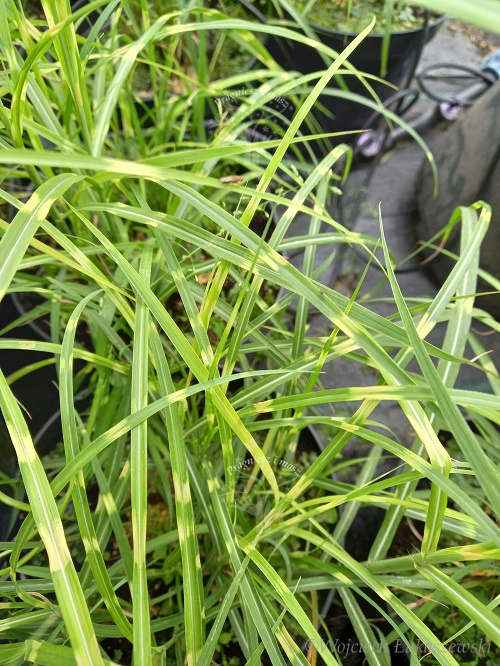To jeden z najniższych miskantów paskowanych dostępnych na rynku. Odmiana ta wyróżnia się zwartym, kompaktowym pokrojem oraz niesamowitym ubarwieniem. Dorasta do około 40-50 cm wysokości i podobnej średnicy, tworząc efektowne, gęste czupryny. Długie, zielone liście zdobione są licznymi, poprzecznymi, złocistymi prążkami, które nadają roślinie charakterystycznego wyglądu.