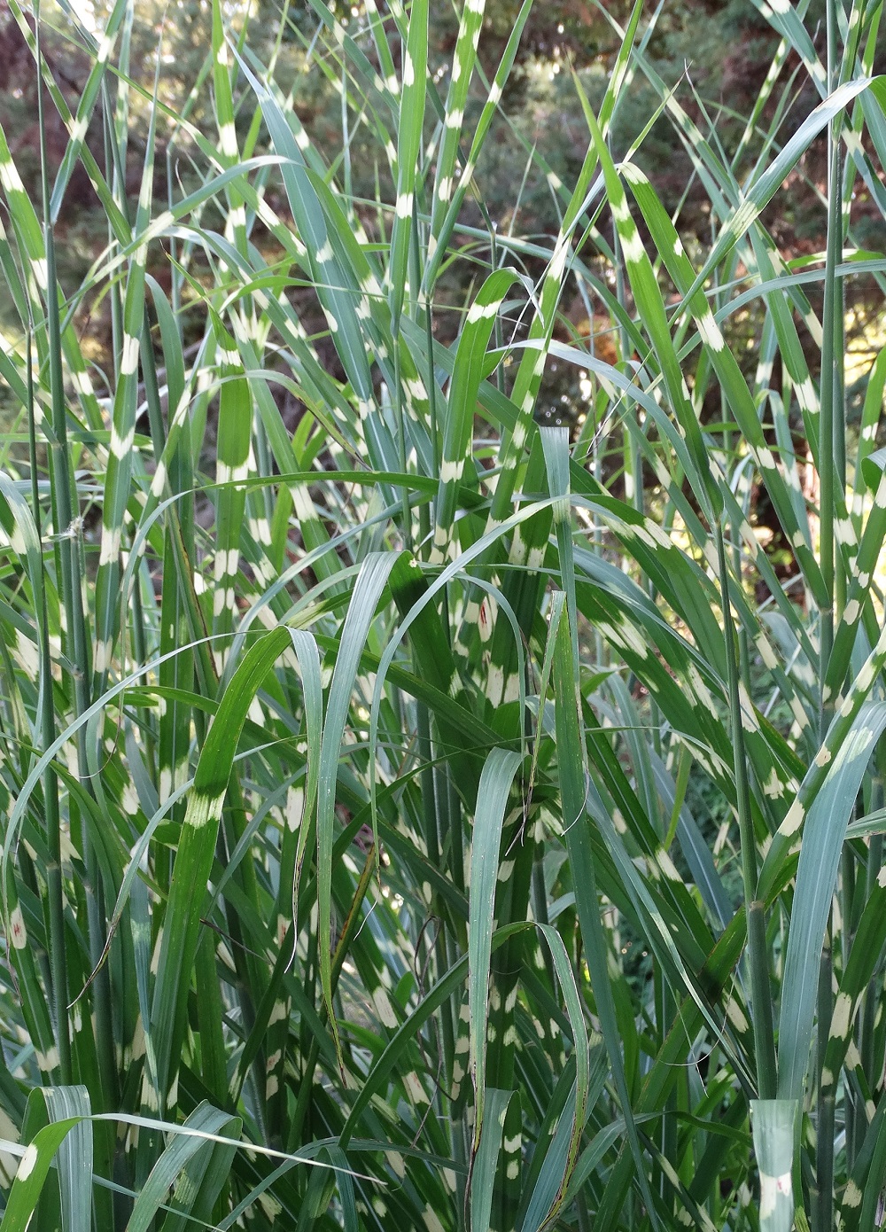 Miskant chiński Zebrinus - Miscanthus sinensis różniąca się od gatunku dużym wzrostem oraz obfitym kwitnieniem we wrześniu i październiku. Niezwykle efektowna trawa o wyprostowanym, wachlarzowatym pokroju i źdźbłach gęstonakrapianych żółtawymi cętkami, które pojawiają się nieregularnie i w różnym natężeniu na całej długości liści już u młodych roślin.