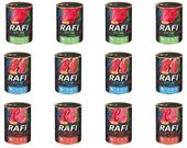 Ten wyjątkowy mix karmy mokrej dla psa marki RAFI został stworzony z myślą o zapewnieniu Twojemu pupilowi najlepszych składników odżywczych. Każda puszka zawiera aż 65% mięsa i produktów pochodzenia zwierzęcego, w tym 4% delikatnej dziczyzny, jagnięciny lub wołowiny, zapewniając bogactwo smaków i wartości odżywczych.