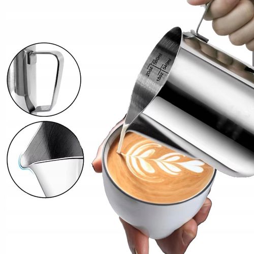 ✔️Ergonomiczny kształt z wygodnym uchwytem i precyzyjnym dzióbkiem umożliwiającym tworzenie wzorów na napojach.