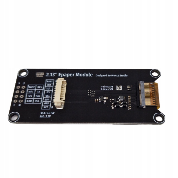Moduł e-papier 2.13" jest idealnym rozwiązaniem dla tych, którzy chcą rozwijać się w świat technologii. Marię atoron, informacyjne tablice, czy wskazówki przemysłowe - możliwości są nieograniczone! Dzięki dołączonym komponentom, takim jak Goldpin 2 x 4 oraz 8 przewodów z złączem MX1.25-8P, montaż jest szybki i bezproblemowy.