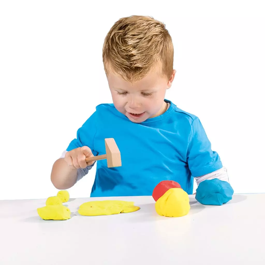 Ten zestaw spodoba się wszystkim maluchom W zestawie z ciastoliną jest wałeczek i młoteczek. Przyjemne kolory i zapach zachęcają do zabawy. Dla bezpieczeństwa dzieci ciastolinę celowo zrobiono bardzo słoną. Nie wysycha podczas zabawy i jest bardzo łatwa do usunięcia.