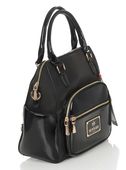 Dzięki innowacyjnemu systemowi 3w1, ta torebka dostosowuje się do Twoich potrzeb: elegancki kuferek na krótkich rączkach do noszenia w dłoni, wygodna listonoszka na regulowanym długim pasku lub pakowny plecak na jedno lub dwa ramiona. Wodoodporny syntetyczny materiał w połączeniu z ekologiczną lakierowaną skórą zapewnia ochronę przed deszczem i codzienne zużycie, gwarantując trwałość w każdych warunkach.