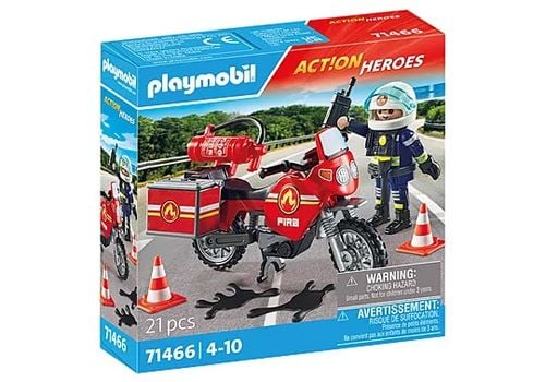 PLAYMOBIL Motocykl straży pożarnej na miejscu wypadku z dużą ilością wyposażenia.