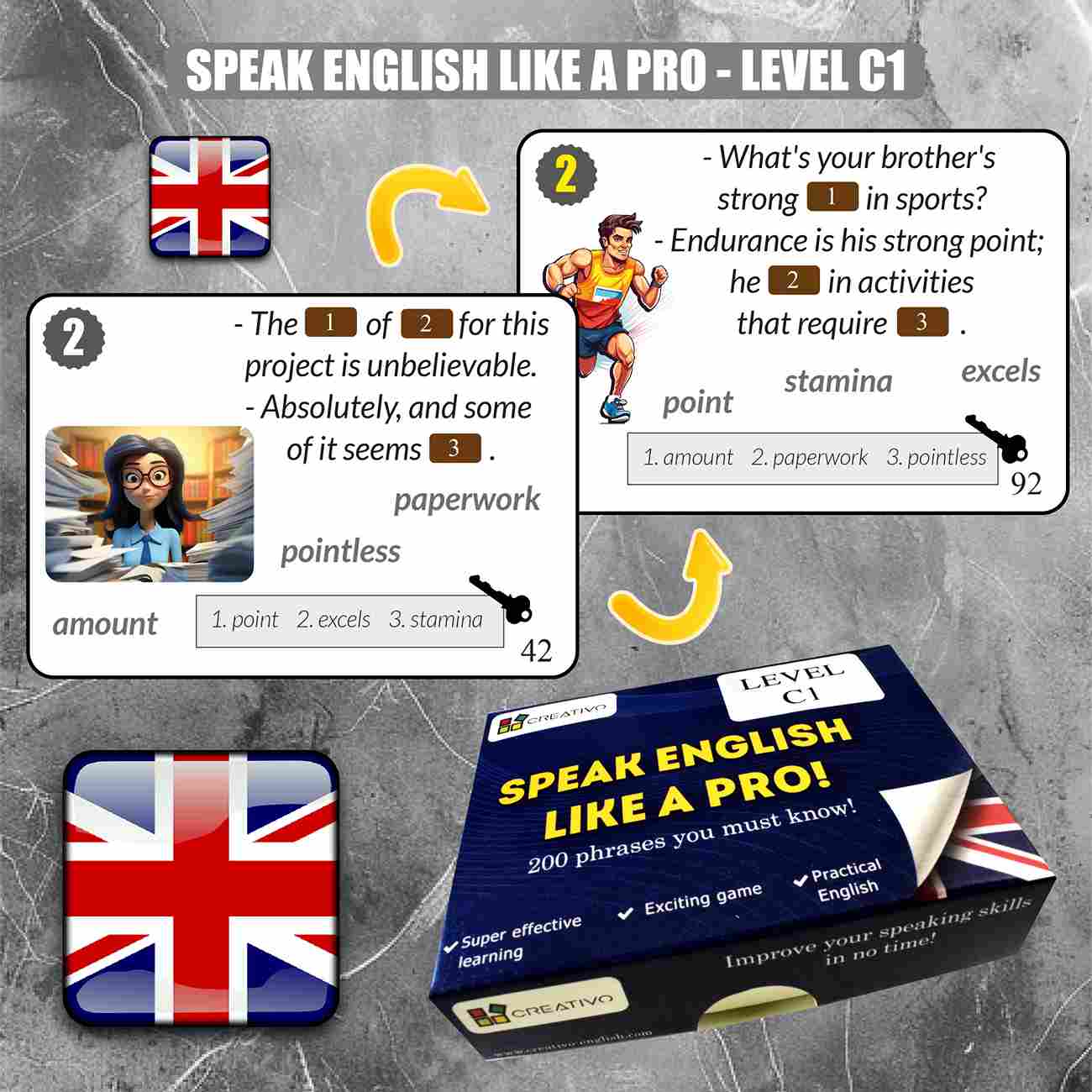 Seria „Mów po angielsku jak zawodowiec” to doskonałe narzędzie zarówno do indywidualnej nauki, jak i wsparcie dydaktyczne w klasie. Każdy zestaw zawiera 100 dialogów z życia codziennego oraz 200 przydatnych zwrotów. Każda karta oferuje praktyczne dialogi do uzupełnienia, co sprzyja aktywnej nauce i rozszerzaniu słownictwa. Dzięki praktycznym dialogom uczniowie mogą ćwiczyć kluczowe wyrażenia i zwroty, które spotykają w codziennym sytuacjach oraz przyswoić sobie bardzo przydatne zwroty. Co więcej, karty oferują trzy różne warianty gry, co czyni naukę jeszcze bardziej angażującą i motywującą. To idealne wsparcie dla nauczycieli, którzy chcą urozmaicić swoje lekcje i wprowadzić nowe, interesujące metody pracy z uczniami. Na odwrocie każdej z kart znajdują się odpowiedzi dzięki czemu uczniowie mogą sami kontrolować swoje postępy w nauce. Seria „Mów po angielsku jak zawodowiec” składa się z 10 tytułów.