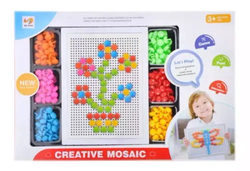 Plastikowa mozaika z planszą do układania różnych wzorów pozwala pobudzić wyobraźnię i tworzyć twojemu dziecku bardziej wyszukane wzory, wszelkiego rodzaju postacie, jedynym ograniczeniem jest ich wyobraźnia. Pozwól dziecku na kreatywność. Plastikowa mozaika pozwolili rozwinąć umiejętności oraz wyobraźnie każdego dziecka Zawartość zestawu: • 180 plastikowych elementów do układania mozaiki, • plansza do układania. Wymiary: • rozmiar produktu: 29.5 x 23.0 x 3.5 cm • rozmiar opakowania: 43.5 x 30.0 x 4.0 cm