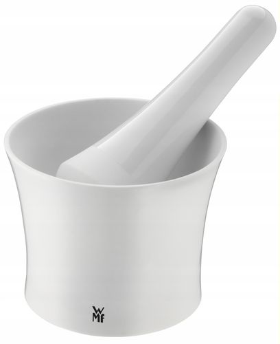 Moździerz niemieckiej marki WMF z kolekcji Gourmet to praktyczne akcesorium kuchenne dla miłośników świeżych przypraw. Moździesz został wykonany z porcelany malowanej na biały kolor. Do moździerza dołączony jest tłuczek o długości 16 cm. Moździerz przeznaczony jest do kruszenia nasion i przypraw oraz rozcierania ziół, co umożliwia skomponowanie własnej mieszanki przypraw. Możliwość mycia w zmywarce - tak Kolekcja GourmetWymiary wysokość - 10 cm średnica - 12 cmWymiary długość tłuczka długość - 16 cmMateriał porcelana