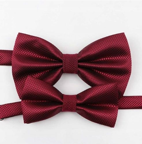 1✔️Elegancki zestaw muszki męskiej i dziecięcej w modnym bordowym kolorze.