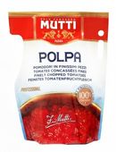 Polpa Mutti (pomidory drobno krojone) przygotowana jest w 100% z włoskich pomidorów, zebranych w optymalnej fazie dojrzałości i przetworzonych w ciągu 24 godz. Opatentowany przez Mutti sposób produkcji (skórka z pomidorów zdejmowana jest na zimno) gwarantuje produkt najwyższej jakości, zachowujący smak i kolor świeżego pomidora.