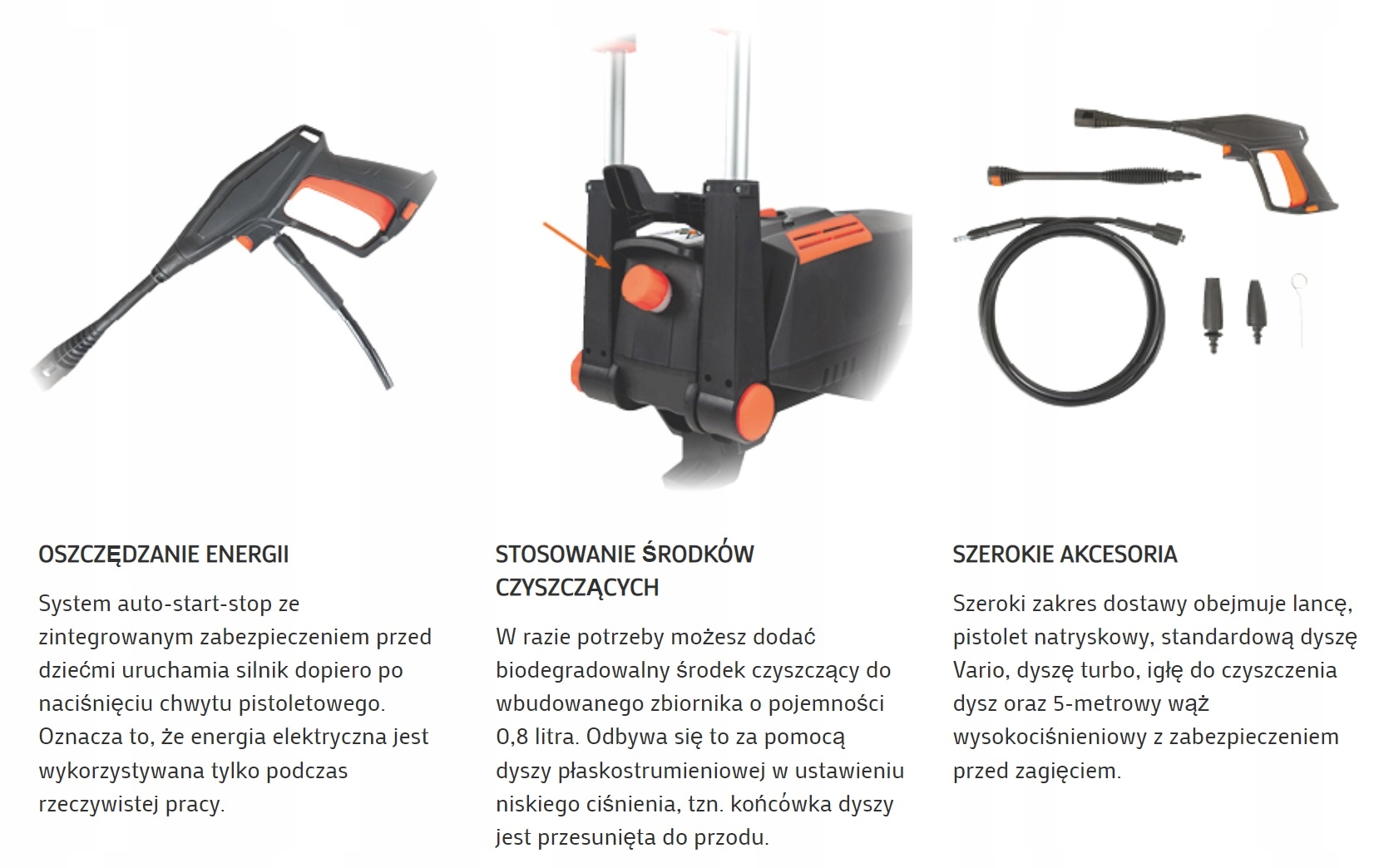 W zestawie znajdziesz wszystko, co potrzebne do natychmiastowego rozpoczęcia pracy: 5-metrowy wąż wysokociśnieniowy, kabel o długości 5 metrów, szybkozłącze do zaopatrzenia w wodę oraz pistolet natryskowy. Myjka DELTAFOX to coś więcej niż tylko narzędzie – to Twój nowy sojusznik w walce z brudem!