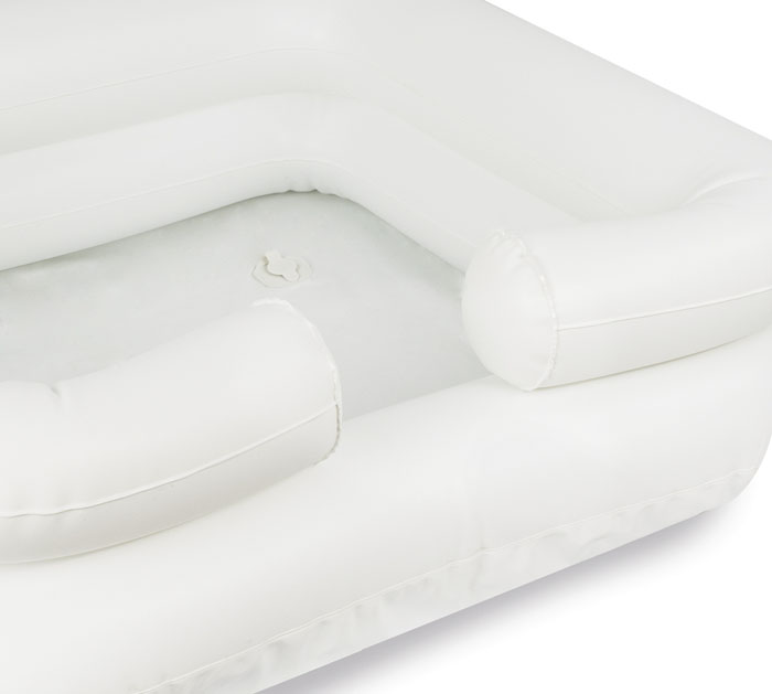 Jest prosta w obsłudze - wystarczy nadmuchać ją i napełnić ciepłą wodą, podłożyć pod kark i bez ryzyka zachlapania ramion czy otoczenia, spokojnie umyć włosy. Po zakończonym myciu wystarczy włożyć wolny koniec wężyka spustowego do pojemnika o odpowiedniej pojemności (np. do wiaderka) i otworzyć zawór. Kiedy woda się wyleje, a myjka wyschnie, można spuścić z niej powietrze i złożyć.