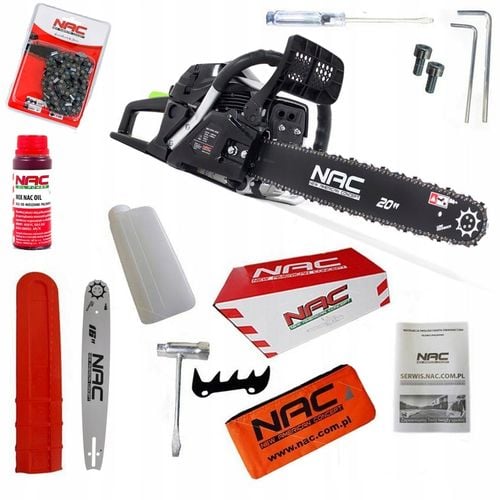 ✔️ Wysokiej jakości komponenty, takie jak prowadnica z łożyskiem, wytrzymały łańcuch NAC, automatyczna pompa oleju oraz ergonomiczna konstrukcja zapewniająca komfort pracy.