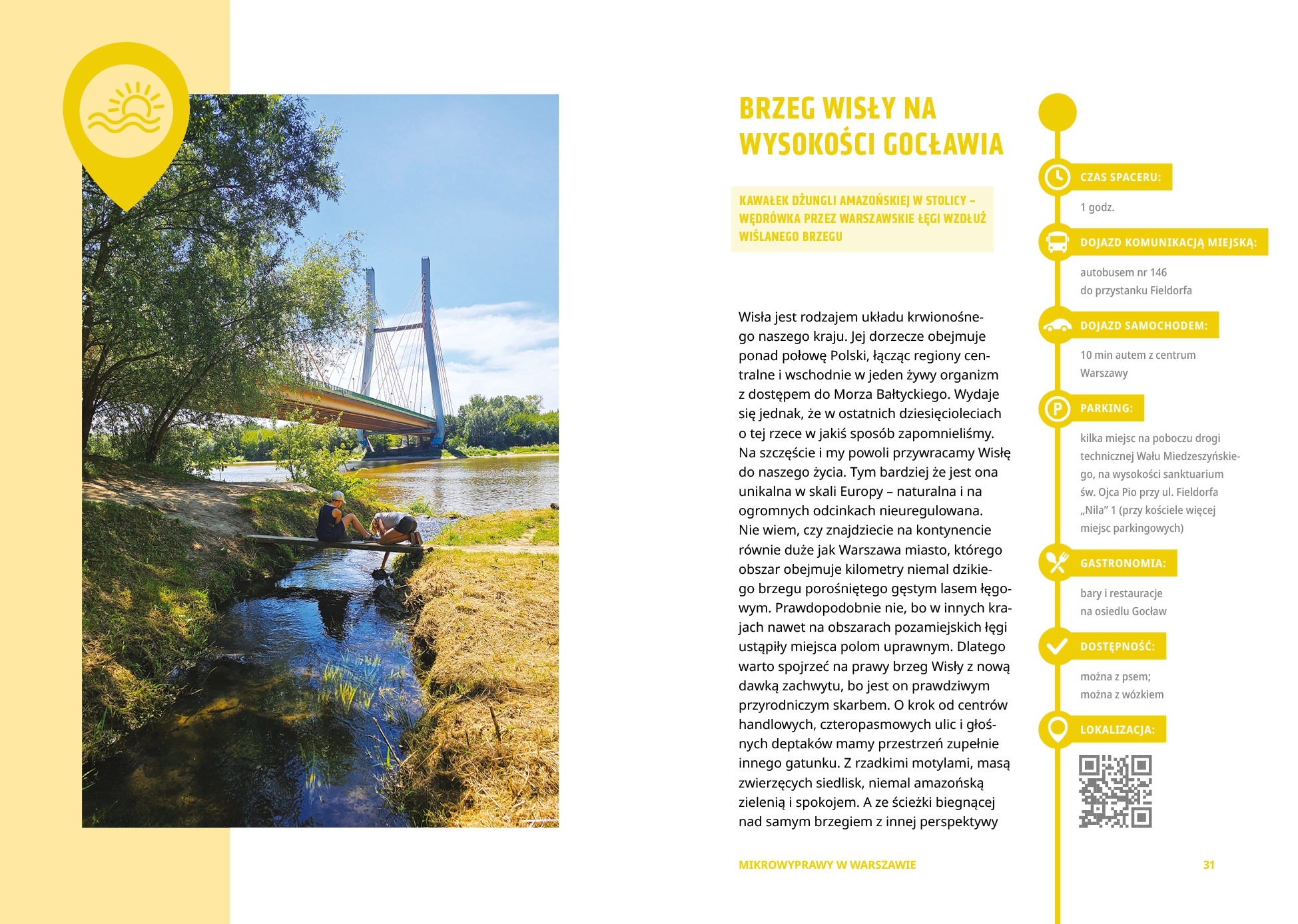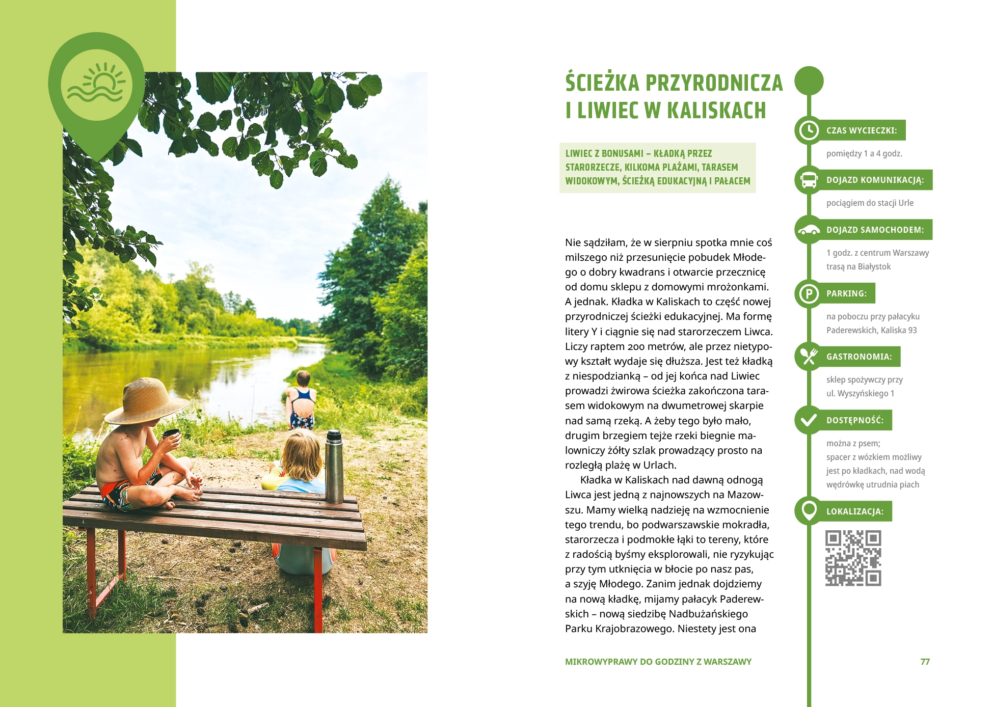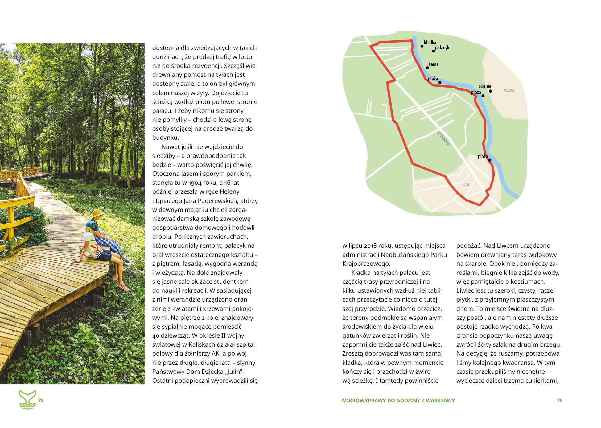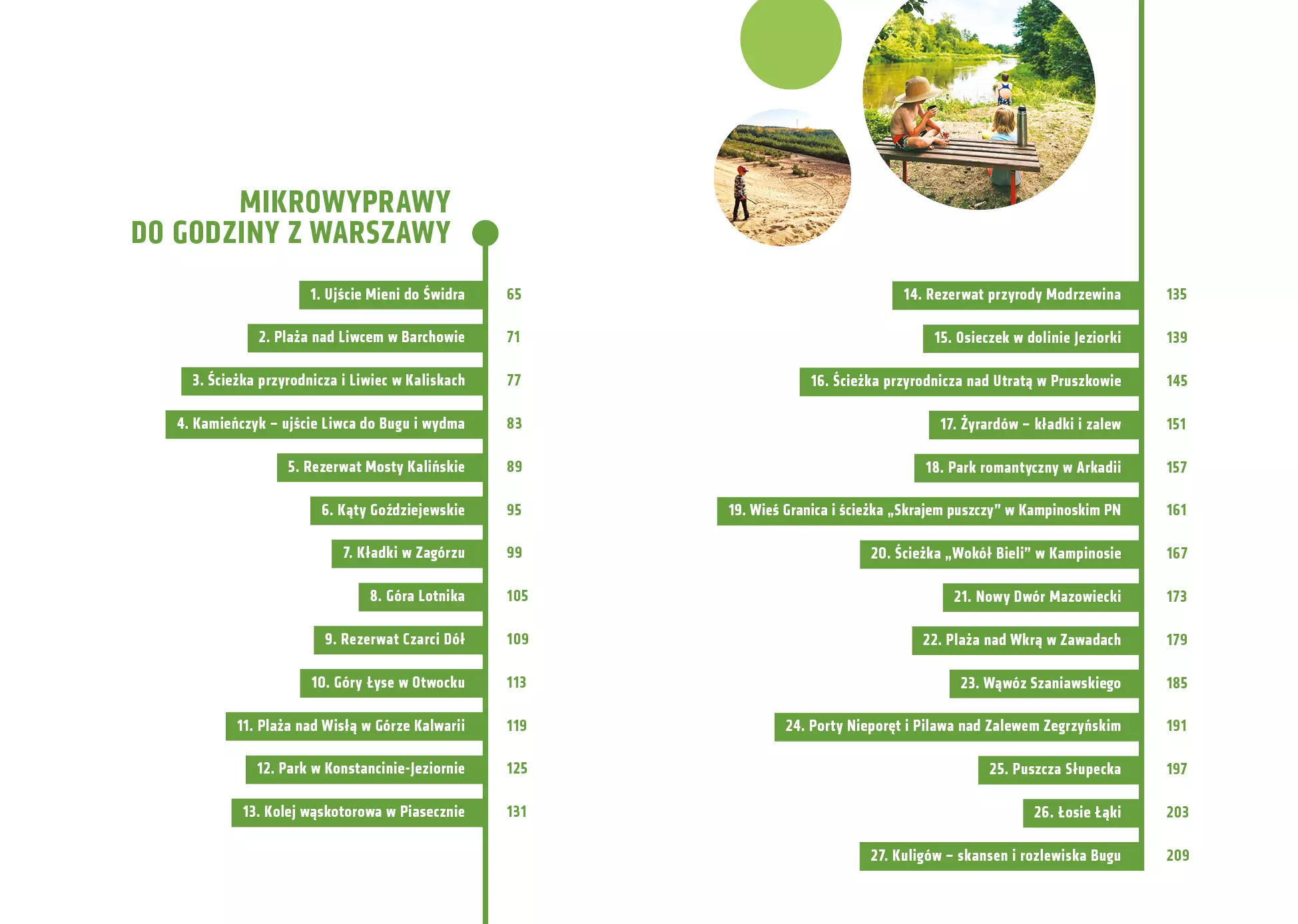Wokół betonowa pustynia, a ty marzysz o błyszczących w słońcu falach, piaszczystych plażach, cienistych jeziorach i zielonych lasach? Masz to wszystko na wyciągnięcie ręki! Odkryj mazowieckie plaże i zielone oazy! • Opalaj się nad brzegiem Wisły lub zamocz nogi w urokliwym Liwcu. • Zrób piknik nad tajemniczym jeziorem w głębi lasu. • Odwiedź amazońską dżunglę w stolicy Polski i wielkie wydmy niemal jak nad Bałtykiem. Zakochaj się w miejscach, o których nie miałeś pojęcia. Żeby do nich dotrzeć, wcale nie musisz długo się przygotowywać ani daleko jechać. Wystarczy, że będziesz mieć wolne popołudnie albo weekend! Mikrowyprawy to idealny pomysł na spędzenie czasu ze znajomymi i rodziną. A alternatywą do zwiedzania zabytków jest relaks nad wodą i w lesie. Znajdziesz tu 50 sprawdzonych przez twórców profilu MIKRPOWYPRAWY Z WARSZAWY propozycji tras zawierających opis spaceru lub szlaku, mapkę, szczegóły dojazdu oraz informacje o kosztach i czasie zwiedzania. Książka zawiera 20 nowych tras, których nie ma na blogu. Zanurkuj w odpoczynku! * Monika Masalska, Seweryn Masalski, autorzy popularnego bloga Mikrowyprawy z Warszawy, na pozornie nudnym i płaskim Mazowszu znaleźli dzikie plaże, góry, kręte rzeki i tajemnicze puszcze. Wraz z trójką dzieci co tydzień odkrywają nieznane miejsca i dobrze wiedzą, że nie trzeba ani jechać bardzo daleko, ani wydawać góry pieniędzy, by rewelacyjnie spędzić czas.