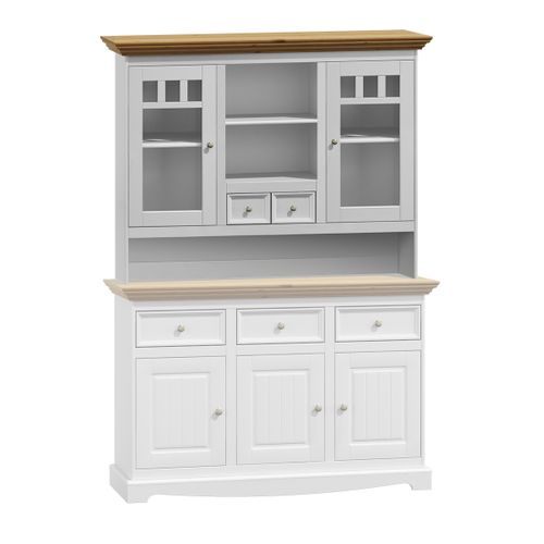 Nadstawka do komody została wykonana z wysokiej jakości drewna sosnowego fińskiego, pomalowana farbą wodną w ciepłym białym kolorze (RAL9010). Dzięki ekologicznym lakierom drewno zachowuje swój naturalny wygląd.