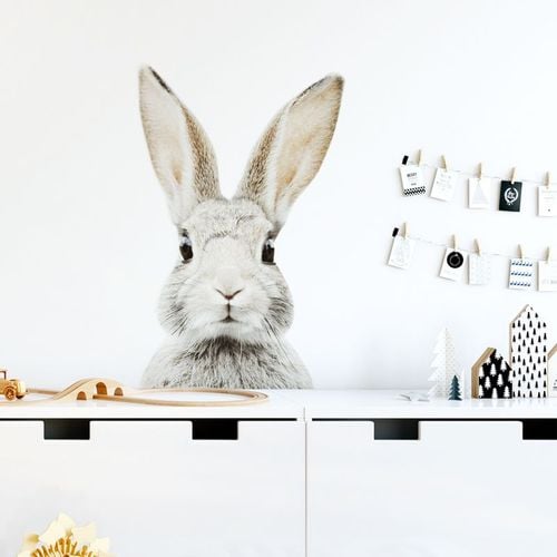 Naklejka drukowana na ścianę wycinana z folii matowej z królikiem Stefanem.