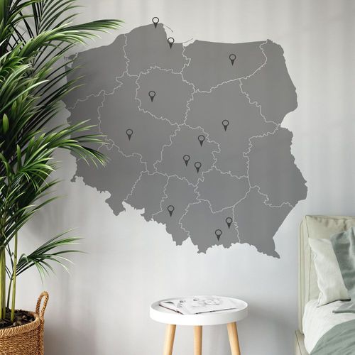 Naklejka na ścianę mapa Polski większa z podziałem na województwa z zestawem znaczników.