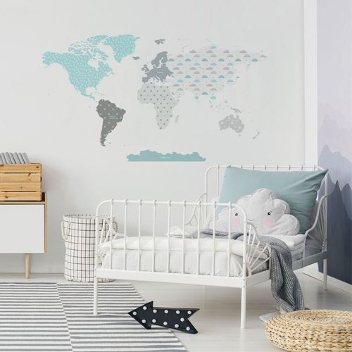 Naklejka mapa świata to świetny pomysł na ozdobę pokoju wszystkich miłośników podróży, zarówno małych jak i dużych.